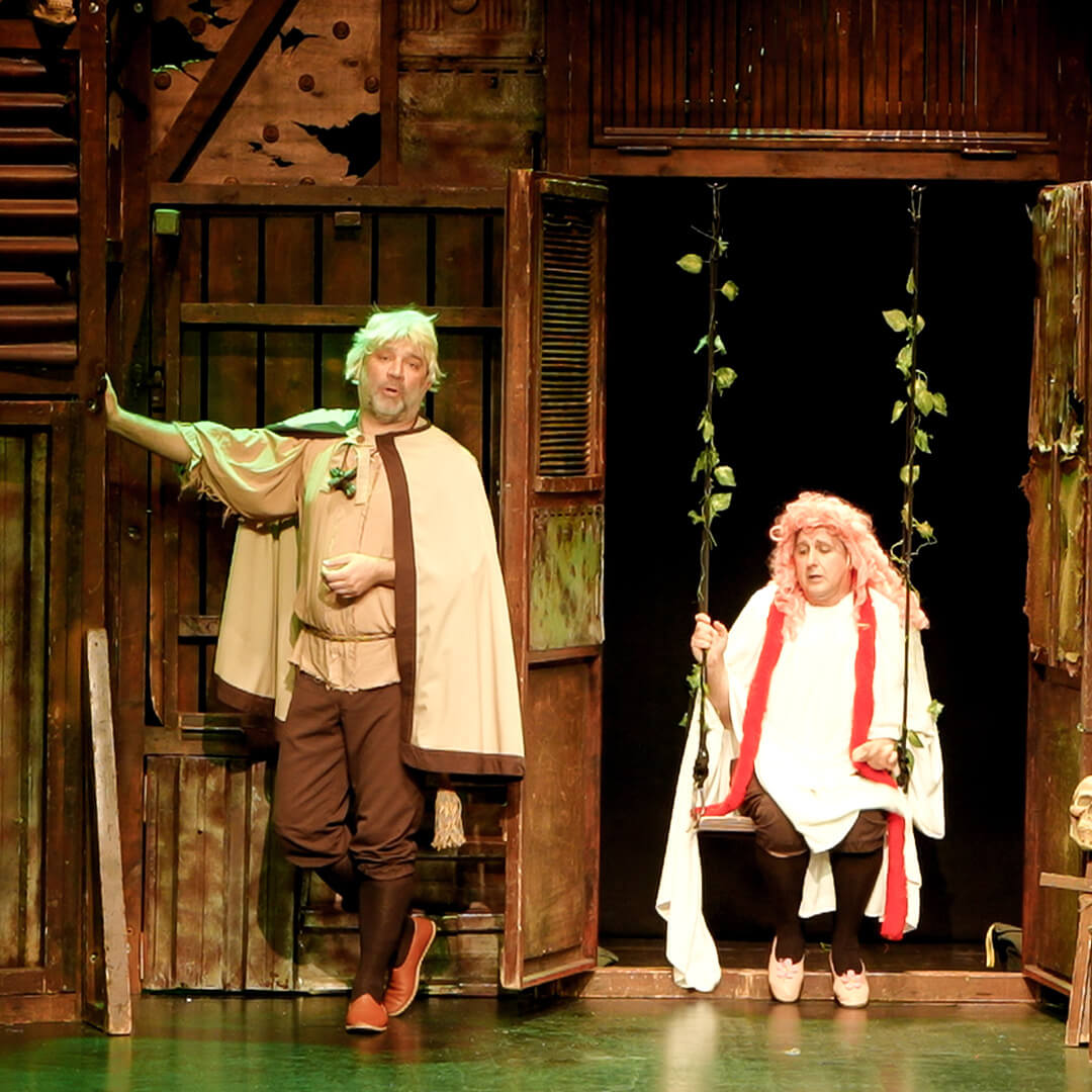 Biri, oyunculuk için istediği ortamı bulamadığı anlaşılan Shakespeare uzmanı gibi davranan yarım porsiyon aktör; diğeri de şarkı söyleme hevesiyle sürekli müzikallerden dem vuran bir şaşkın…